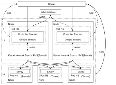 在 Kubernetes 架构下,这些四层负载均衡器的控制面板可以定义为 Kubernetes Pod 以实现故障转移,扩缩容等高级功能。而基于 Linux 自带组件比如 IPVS,即可实现基于四层的数据包转发。