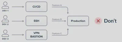 总之,部署只有一个关键路径,而这个路径严格由 CI/CD 平台掌握。在网络/访问/硬件级别禁止从开发人员工作站部署生产代码。