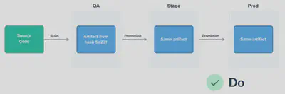结果是保证在生产中部署的确切二进制/包与管道中测试的确切二进制/包相同。