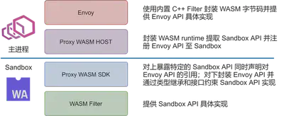 - 对 Envoy 主进程:暴露特定的沙箱 API 同时声明对 Envoy API 的引用;