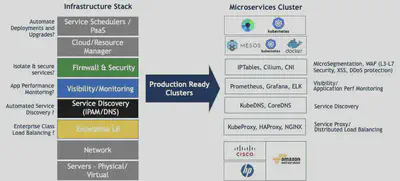 这种规模化和动态化对于早期运行单体程序和管理应用程序的基础设施带来了具体的转变。为支持这种动态环境,新一代架构需要在生态系统中补充大量的新技术。为了交付所有的用户场景,我们需要在基础架构栈的每个级别上提供多个解决方案。根据需要,基础架构人员开始将这些技术集成到平台上,但这也意味着程序开发人员需要额外的负担来支持这些技术。