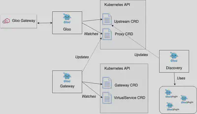 在 Gloo 的控制平面中,还有另一个组件称为gateway。该组件实现更高级别的特定于域的配置,用户最终将与之交互 (直接通过 YAML 文件或通过glooctl CLI 工具间接地交互)。gateway组件涉及两个特定于域的对象: