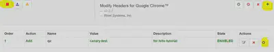 现在可以使用任何支持轻松修改发送到服务器的 HTTP 请求的工具来访问“version-2”。你可以使用 postman,或者它的 chorme 插件,它是非常有名的 api 和 http 测试工具,但是它的返回结果页却是文本类型的。所以我们将会使用另外一个 chrome 插件“Modify Headers for Google Chrome”。通过单击其图标安装并打开设置后,您可以添加任何页面请求的自定义 header(并轻松打开和关闭):