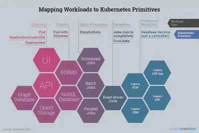 Kubernetes 不仅仅是一个容器管理工具。它是一个平台,旨在处理包装在任意数量的容器和组合中的各种工作负载。Kubernetes 内置了多个控制器,可映射到云原生架构的各个层。