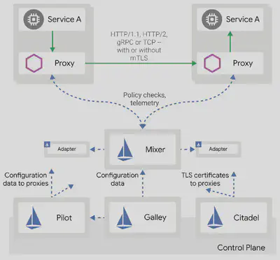 - mixer client: 测量和遥测相关的客户端实现,基于 Envoy 做扩展,通过 RPC 和 Mixer server 进行交互,实现策略管控和遥测