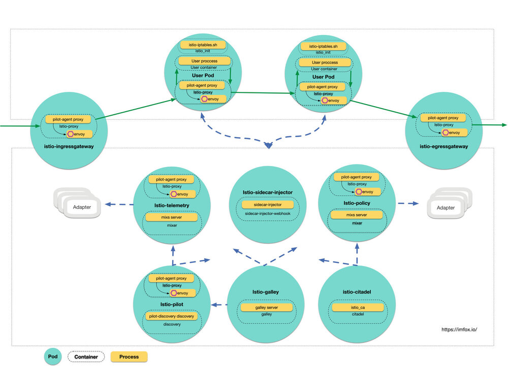 - sink: 「配置」的消费端,在 istio 中典型的 sink 包括 Pilot 和 Mixer 组件