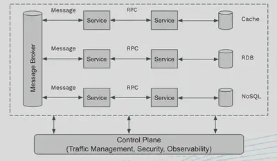 理想情况下,我们希望 Service Mesh 能够管理微服务中用到的所有七层协议的流量,包括 RPC、Messaging、Cache、DB 等。例如: