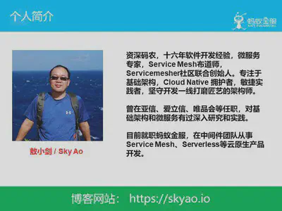大家好,今天给大家来的演讲专题是“Knative:重新定义 Serverless”, 我是来自蚂蚁金服中间件的敖小剑。