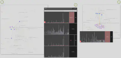 Figure 4. Glasnostic 控制台显示之前设置的通道 (2) 的细化通道 (1),首先根据连接池和请求速率参数配置断开非关键任务客户端,从而延迟了关键客户端 (3) 的熔断。