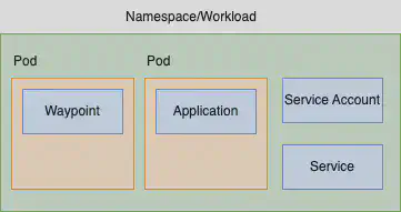 对于我们来说,命名空间是工作负载的边界,这是一种一对一的关系,而且是一条坚决的规则。因此,我相信我们也会为每个命名空间创建一个 waypoint 代理。我们不会在多个工作负载之间共享 waypoint 代理,因为这会导致耦合(风险/冲击范围)。因此,我们将得到类似于这样的结果: