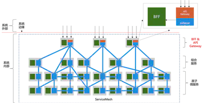 - Service Mesh 部署在系统内部:因为原子微服务和组合服务通常不会直接暴露给外部系统