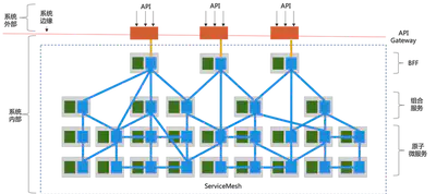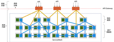 - 原子微服务和组合服务部署于 系统内部,在采用 Service Mesh 的情况下,由 Service Mesh 提供服务间通讯的能力