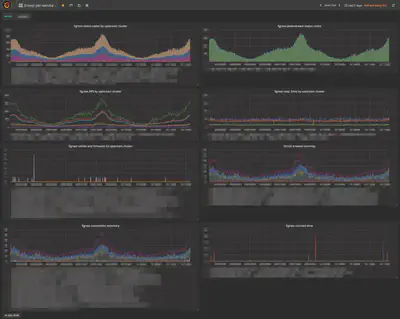 在 Grafana 上,仪表板和 Envoy 的整个仪表板都为每项服务做好准备,例如上游 RPS 和超时发生。我们还将准备一个服务大小和服务粒度的仪表板。