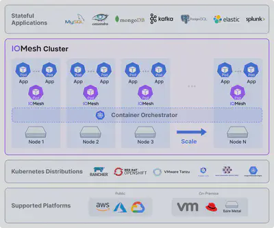 此处我们以 IOMesh 的架构图作为示例,说明云原生存储的特点。