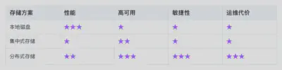 - 此外,该方案无论是部署还是故障后的修复,都需要大量人力的参与,这使得本地存储方案的运维成本非常高。同时由于节点间的存储空间无法共享,也很容易造成存储空间的浪费。