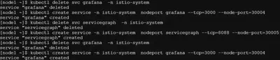 要暴露 Prometheus、Grafana 和 服务图标服务,需要先删除已有的服务,用 NodePort 替换 ClusterIP,用实例页顶端展示的端口访问服务(如下所示)。