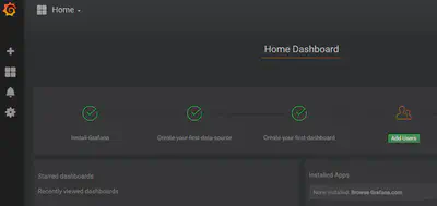 在 Grafana 页,添加 Prometheus 数据源,并确认 Dashboard 已经运行。