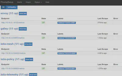 如上所示,默认会安装 Prometheus、ServiceGraph、Jaeger、Grafana 和 Zipkin。
