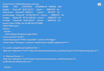 Istio 已经安装并验证过了,可以在上面部署示例应用 BookInfo 了,这是一个简单的书店模拟应用,由四个服务组成:网站首页、书籍信息、评论(几个特定的版本有评论服务)和评分,全部由 Istio 管理。